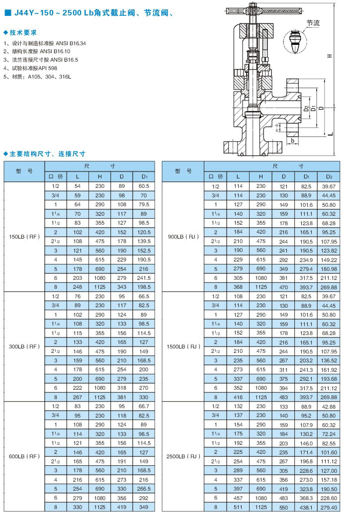 1. 手輪、手柄操作的角式截止閥可安裝在管道的任何位置上。2. 手輪、手柄及微動機構,不允許作起吊用。3. 介質的流向應與閥體所示箭頭方向一致。