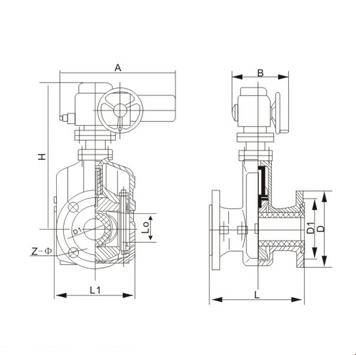 電動鋁合金管夾閥(GJ941X-6L)主要外形連接尺寸(mm)