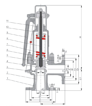 【帶扳手微啟式安全閥結構圖】