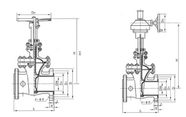 電動襯氟閘閥主要外形和連接尺寸: